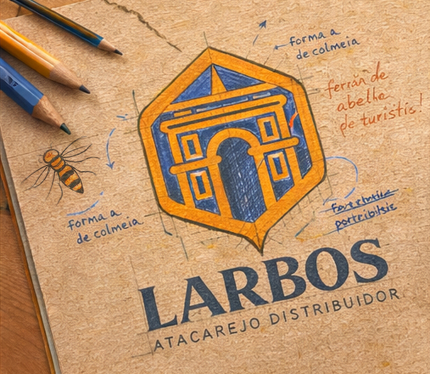 Desenvolvimento da identidade visual da Larbos – Atacarejo Distribuidor, inspirado na abelha como símbolo de trabalho, organização e força coletiva.